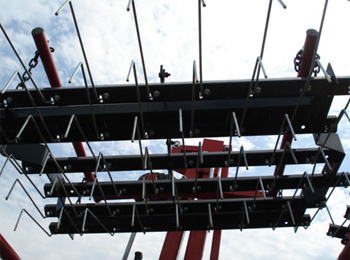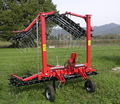 Штригель оснащен пружинными зубьями со специальной гидравлически складной рамой и имеет ширину захвата 12 метров. За счет пружинного зуба, производится мульчирование почвы и вычесывание молодых сорняков, практически не повреждая культурные всходы, заделывание в почву минеральных удобрений и экранных гербицидов.