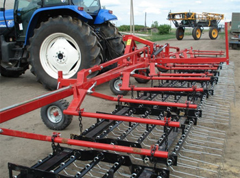 Сетчатая борона «Штригель» предназначена для боронования почвы непосредственно перед посевом, для борьбы с прорастающим сорняком. Очень важно проводить боронование посевов для разрушения почвенной корки, особенно на тяжелых заплывающих почвах. Как правило, обильные дожди, выпадающие в некоторые годы в период от посева до появления всходов, следующая за ними жаркая сухая погода приводят к образованию почвенной корки. Она препятствует доступу воздуха к семенам, затрудняет прорастание растений. В результате проростки частично погибают, всходы сильно изреживаются, появляются не дружно. Все это в конечном итоге сильно снижает урожайность и качество сельхозпродукции. Сетчатая борона применяется при возделывании с/х культур для полноты насаждения, борьбы с сорняками и аэрации почвы. Благодаря рабочей ширине орудия можно применять на посевах дорожками при возделывании зерновых и рапсовых культур. При возделывании кукурузы и свеклы орудие применяется также перед всходами посева для борьбы с уже проросшими сорняками (слепое боронование сетчатой бороной) и по достижению ростками 25 см…Причем применение по пропашным культурам способно заменить несколько междурядных обработок. Надо отметить что, боронование значительно производительнее и дешевле, чем междурядные обработки. Использование орудия позволяет сохранить водный баланс. Сетчатая борона применяется при возделывании зерновых культур вплоть до появления ростков культурных растений (боронование в слепую), для вычесывания репейных сорняков, при кукурузных и других пропашных культурах, по всей поверхности, до закрытия культур, для разравнивания соломы. При целевом применении этого орудия достигается значительная экономия на средствах для борьбы с сорняками, чем междурядные обработки. Использование орудия позволяет сохранить водный баланс. Сетчатая борона применяется при возделывании зерновых культур вплоть до появления ростков культурных растений (боронование в слепую), для вычесывания репейных сорняков, при кукурузных и других пропашных культурах, по всей поверхности, до закрытия культур, для разравнивания соломы. При целевом применении этого орудия достигается значительная экономия на средствах для борьбы с сорняками.