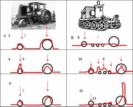 Совсем иная картина наблюдается при использовании гусеничного трактора (смотреть Б).