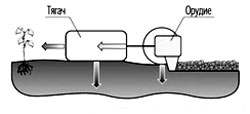 Почву разрушают и уплотняют колеса и гусеницы сельскохозяйственных машин: тракторов (Deutz-Fahr — Дойц Фар, John Deere — Джон Дир, Claas — Клаас, Fendt Trisix — Фендт, Caterpillar — Катерпиллар, Challenger — Челенджер, Laverda — Лаверда, Massey Ferguson — Массей Фергуссон, Holmer — Холмер, Ropa — Ропа, Franz Kleine — Франц Кляйне, Sampo — Сампо), комбайнов, грузовиков, сеялок, косилок и т. п. Всю эту технику можно представить как систему для обработки почвы и растений, состоящую из двух частей: орудия обработки (орудие) и машины, которые перемещают эти орудия («тягач») (см. рис. 1).