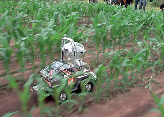 AMAZONE видит серьезный растущий потенциал в области применения полевых роботов в сельском хозяйстве. Поэтому AMAZONE многие годы успешно сотрудничает с техническим институтом в Оснабрюке. Группа студентов технического института Оснабрюка в июне 2007 года на международном техническом форуме Field Robot Event в Вагенинге (Голландия) снова имела успех. Четвертый раз подряд оснабрюкская команда становится на пьедестал почета. Автономный полевой робот Amaizeing был разработан группой студентов под руководством профессора Рукельсхаузена, причем был использован опыт предыдущего робота Maizerati. Оба полевых робота могут передвигаться по рядам растений, разворачиваться и находить следующий ряд самостоятельно, без вмешательства человека, а также считать цветные маркированные части (мячики для гольфа). Это все происходит с помощью видеокамер и датчиков. Вред растениям не наносится. Микроконтролер подсчитывает сигналы и управляет полевым роботом, например, на неровной почве. Если датчики больше не видят рядков, начинается процесс разворота. Оба полевых робота могут также распознавать цвета. Пользователь может выбрать до 8 цветов, например, зеленый для растений и желтый для подсчета объектов в соревновании. Одновременно полевой робот может поливать из навешенной бочки с водой цветы (сорняки). К проекту Amaizeing относится датчик-мышь — путевой датчик, на который не влияет пробуксовка, архитектура системы с децентрализованным размещением микроконтролера, применение двух видеокамер и разработка трактора для борьбы с сорняками. Интеграция большого количества датчиков («Sensor Fusion») стала основой успеха по сравнению с конкурентами. Это обеспечило надежную навигацию в рядах кукурузы и в междурядьях. В этой области было достигнуто значительное улучшение по сравнению с прошедшими годами. Борьба с сорняками заключалась в распознавании желтых мячиков для гольфа и их устранении. В свободном соревновании студенты из Оснабрюка продемонстрировали в первую очередь связь между движущимися роботами на поле. Данные передавались через беспроводную локальную сеть WLAN между роботами Amaizeing и Maizerati, так что оба синхронно передвигались по полю. Это «скопление мини-роботов» предвещает будущие разработки в области сельского хозяйства. Фирма AMAZONE поддерживает разработку большего транспортного средства, которое можно будет использовать, к примеру, для защиты растений.