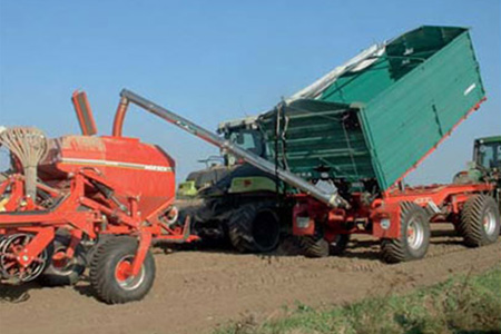 Быстрая загрузка сеялок. Высокая производительность. Изготовлен из нержавеющей стали. Погрузочные шнек изготовлен из нержавеющей стали, механическое складывание, привод через гидромотор, выходной шланг 1,2 м, для крепления сзади грузовика.