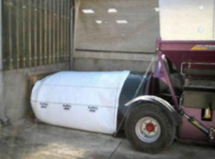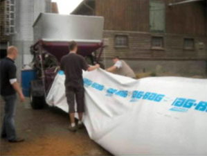 5. Рукава лучше всего делать на ровной, плотной площадке. Начать закладывать рукава можно, например, от стены, рулона с сеном/соломой и другого упора. После заполнения примерно 1-2 м рукава веса самого рукава будет достаточно для удержания его на месте, он не будет скользить назад.
