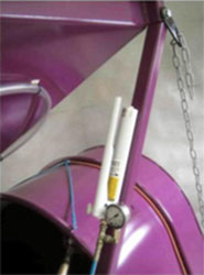 Инструкция по работе с упаковщиком Murska1400/2000CB «Crimper Bagger» и Murska Bagger Так надо делать плющеное зерно в рукава: 1. Опустите донную пластину упаковочного выхода за счет цепей. Вставьте рукав между трубами на упаковщике, обратив внимание на правильное направление: рукав вытягивается из-под пленки. Диаметр рукава надо выбрать в соответствии с диаметром упаковочного выхода (01,65 или 2,0м). 2. Поднимите донную пластину регулировочными цепями как можно выше. Рукав должен быть за порогом- трубой переднего края донной пластины. Закрепите резиновый шланг поверх переднего края сложенного рукава.