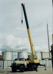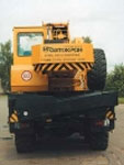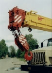Кран стреловой Ивановец КС-45717-1, грузоподъемностью 25 т, смонтирован на шасси Урал-4320. Привод осуществляется от коробки отбора мощности шасси через один гидронасос.