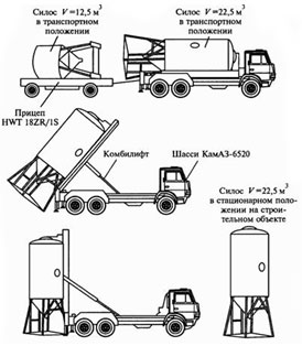 силоса обеспечивают сохранность ССС при транспортировке и хранении на заводах, базах и строительных площадках, а дополнительные устройства позволяют дозировать и непрерывно подавать ССС к месту приготовления и использования готовых строительных смесей.