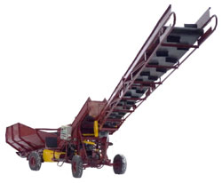Транспортер-загрузчик (крот) предназначен для загрузки картофеля, корнеплодов, капусты и др. с.х. продуктов в типовые хранилища, допускающие въезд в них транспортных средств, при хранении продуктов как беззакромным так и в закромах с разборными стенками. Возможно использование машины на загрузке транспортных средств.