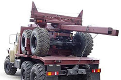 Трубовоз предназначен для перевозки труб диаметром от 530 до 1420 мм длиной до 12 м; эксплуатируется по всем видам дорог.