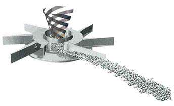 Гранулы, прежде чем столкнуться с разбрасывающими лопатками, получают начальную угловую скорость в системе Rota Flow. Между гранулами и лопатками не возникает удара, ведущего к дроблению гранул.