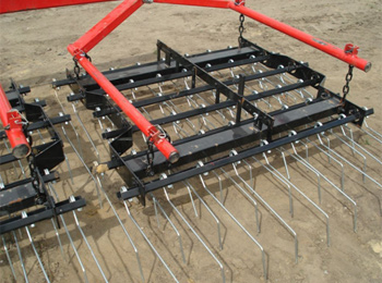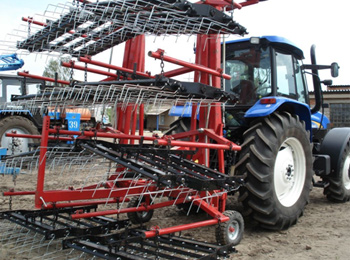 Штригель оснащен пружинными зубьями со специальной гидравлически складной рамой и имеет ширину захвата 12 метров. За счет пружинного зуба, производится мульчирование почвы и вычесывание молодых сорняков, практически не повреждая культурные всходы, заделывание в почву минеральных удобрений и экранных гербицидов.