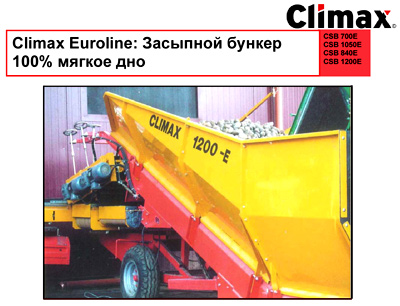 Засыпные бункеры производства Climax отличает использование уникальной технологии. Все модели были разработаны с учетом пожеланий клиентов, для максимально эффективного практического применения. Работая с засыпными бункерами Climax, вы можете расчитывать на максимально бережное обращение с продукцией, удобство в использовании, надежность и длительный срок использования машины, полностью стандартное оборудование, - т. о. на повышенную производительность Вашей компании.
