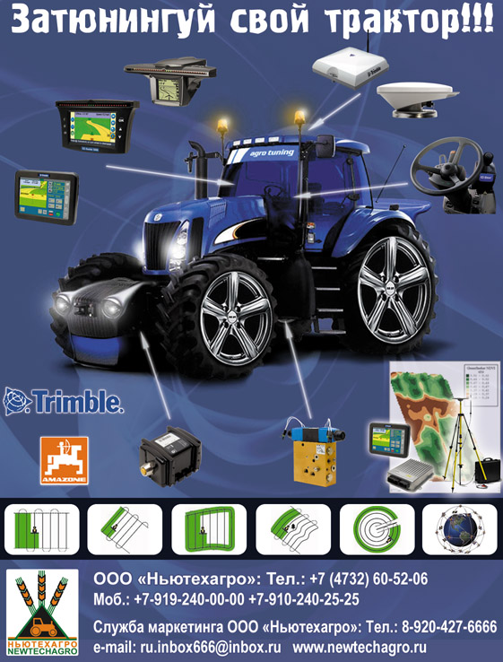 А в сельском хозяйстве уже нельзя обойтись без него, чтобы ни говорили (до этого мы не созрели…., о!!! Это сложно!!!), а в реальности это все очень просто и выгодно!!! Мы Вас обучим, Вы будете легко и точно управлять своей техникой. Консультирование, обучение, поставка навигационного и сельскохозяйственного оборудования. ООО «Ньютехагро» Newtechagro. Системы Параллельного вождения Trimble AgGPS EZ-Guide Plus, EZ-Guide 500, EZ-Steer подруливающее устройство, автопилоты. Картирование полей.