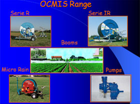 ДОЖДЕВАЛЬНЫХ МАШИН БАРАБАННОГО ТИПА, постепенно завоевывая положение на рынке в данном секторе. Ocmis производит целый ряд моделей дождевальных машин, что позволяет использовать это оборудование в любых ситуациях. Компания также производит насосы для тракторов, как для чистой, так и для грязной воды, а также центробежные насосы и повышающие передачи для тепловых и электрических двигателей.