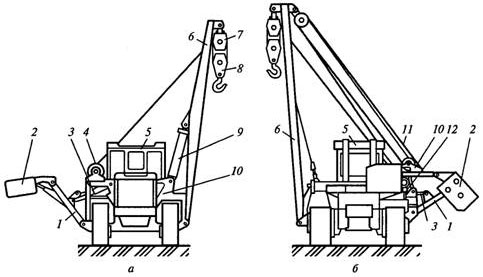 Рис. 1. Гусеничные краны-трубоукладчики: а – с жесткой подвеской стрелы; б – то же, с гибкой.