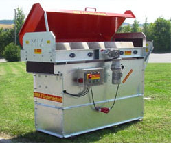 Выполняется с защитным кожухом, предотвращающим загрязнение цеха луковой шелухой. Обрезание верхушек луковиц осуществляется ножами, количество ножей зависит от производительности данной модели. Шелуха скапливается в специальном поддоне.