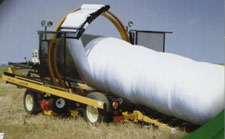 Обматывает тюки в длинный сайло (мешок), сохраняет экономичность пленки и продукта.
