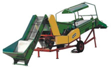 СОРТИРОВКА ЛУКА, стационарная машина для сортирования лука. Осн. рабочие органы: загрузочный скребковый транспортёр; центробежный вентилятор с воздуховодом; 2 решётных стана, установленные под углом к горизонту; лотки для отвода отсортированного лука. Лук-севок, засыпанный в приёмный лоток загрузочного транспортёра , захватывается скребками и подаётся на первое решете верх. решётного стана. При падении с транспортёра луковицы проходят через воздушный поток, в к-ром происходит отделение лёгких примесей (чешуя, усохшие луковицы). На первом решете задерживаются луковицы диам. св. 30 мм (лук-выборок из севка); двигаясь по решету, они попадают в лоток и затем в тару. Провалившиеся через отверстия решета луковицы попадают на второе решето; луковицы диам. си. 24 мм (севок I гр.) двигаются по решету, диам. менее 24 мм попадают в поддон решётного стана и через лоток — в ниж. решётный стан. Здесь с первого решета сходит севок II гр. (диам. 15 — 24 мм), со второго — севок III гр. (диам. 10 — 14 мм).